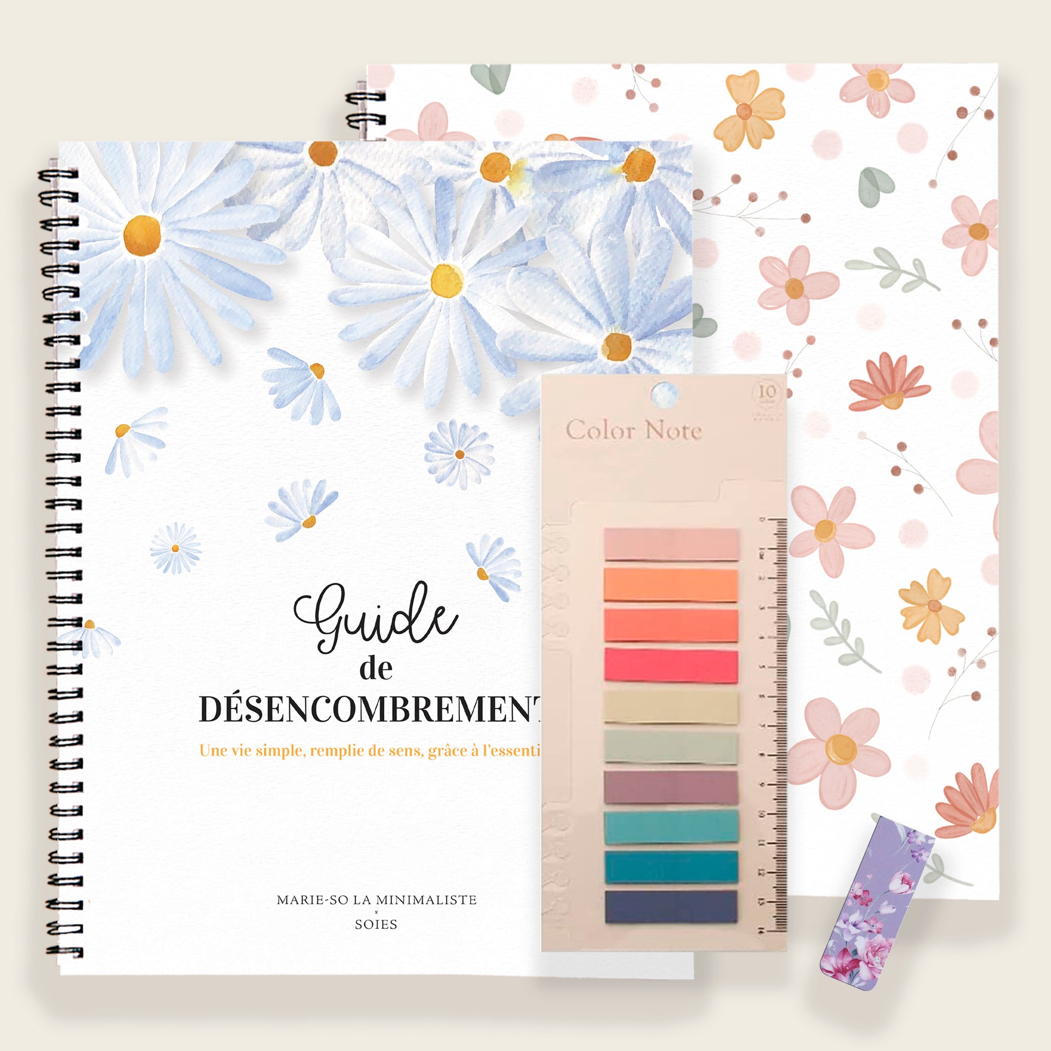 Cet ensemble vous offre un guide du désencombrement, un grand carnet de notes, des onglets adhésifs et un signet, et ce, avec un rabais de 20% sur le prix régulier